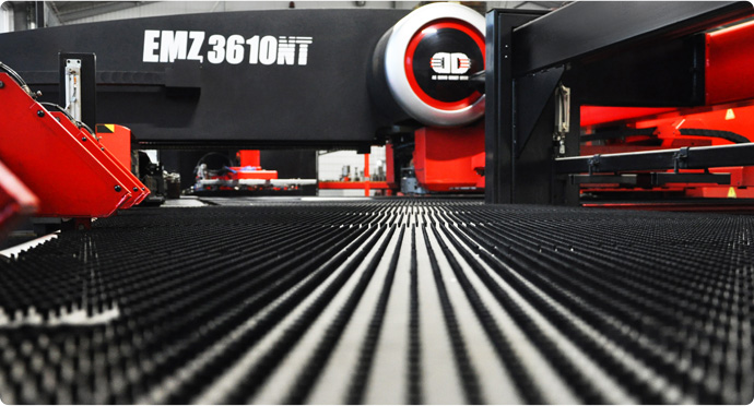 Die perfekte Reproduzierbarkeit und die hohe Fertigungszeit bei großen Auflagen machen dieses Verfahren besonders wirtschaftlich. Bei großen und komplexen Formen kommen unsere CNC-Nibbler zum Einsatz.